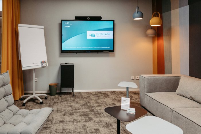 Der Raum bietet alles, was Sie für ein produktives Meeting brauchen: bequeme Sitzgelegenheiten für 6 Personen, Whiteboard/Flipchart, WLAN und modernes Touchdisplay. Perfekt für Workshops, Projektbesprechungen oder kleine Präsentationen in entspannter Atmosphäre.